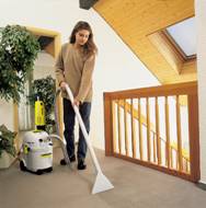 最小型的全能清洗机,用于小面积清洗,将水与清洁剂混合液在压力的作用下喷入待洗表面,然后将溶有污物的混合液抽回至污水槽中,经过清洗的地毯及地面仅有一点潮,您马上可以在上面体验清洁的感觉。